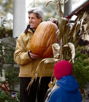 | AP: Porkolia Iowa In a late breaking story it is being reported that Senator Kerry accidentally dropped a large pumpkin on a small boy who resides in Porkolia. The youngster was at a Pumpkin Patch with his family to participate in a Halloween scavenger hunt. Presidential candidate John Kerry was also in Porkolia and his bus stopped at the Pumpkin Patch so Kerry could expound on his commitment to pumpkin tree farmers. The Senator lifted the 82-pound pumpkin and was trying to hold it over his head to show the excited crowd of over 30 Porkolia residents. The pumpkin slipped and reportedly fell on the young boy. Kerry was whisked away by the Secret Service when the boy’s father started to make threatening advances. The Kerry spokesperson has reported that the Pumpkin slip was due to a war wound. It was also reported the small boy is in stable condition. |